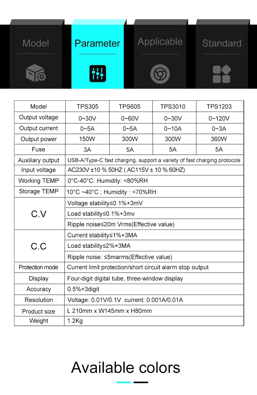 30V 10A ラボ用調整可能 DC 電源 - TPS305ブラック ...は取り寄せ中で入荷次第発送します。